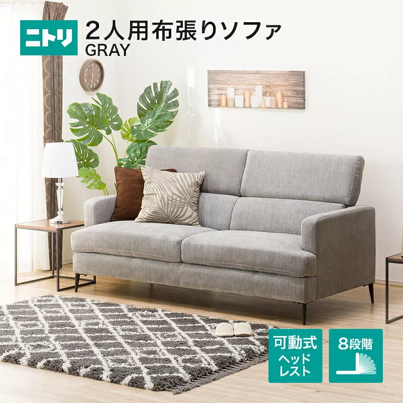 ニトリの2人用や3人用のソファは、ラインナップが特に豊富で人気があります。背もたれと肘掛けがあるオーソドックスなソファは、横幅は約160cmほどあり、8畳前後ほどのお部屋の大きさに丁度収まるサイズです。
