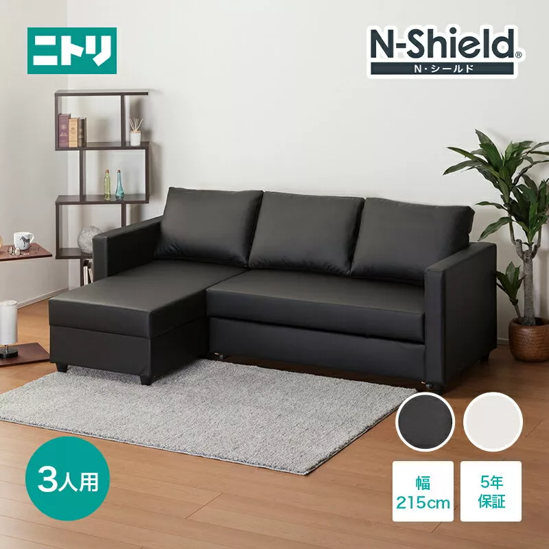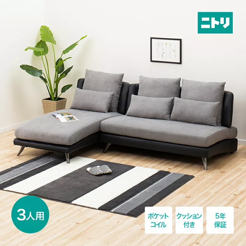 第3位 合皮カウチソファベッド ニトリ | 公式サイト楽天ヤフー | ゆったりと足を伸ばせて座れるカウチソファ | 布 | 215×141×86cm | 約91kg | |