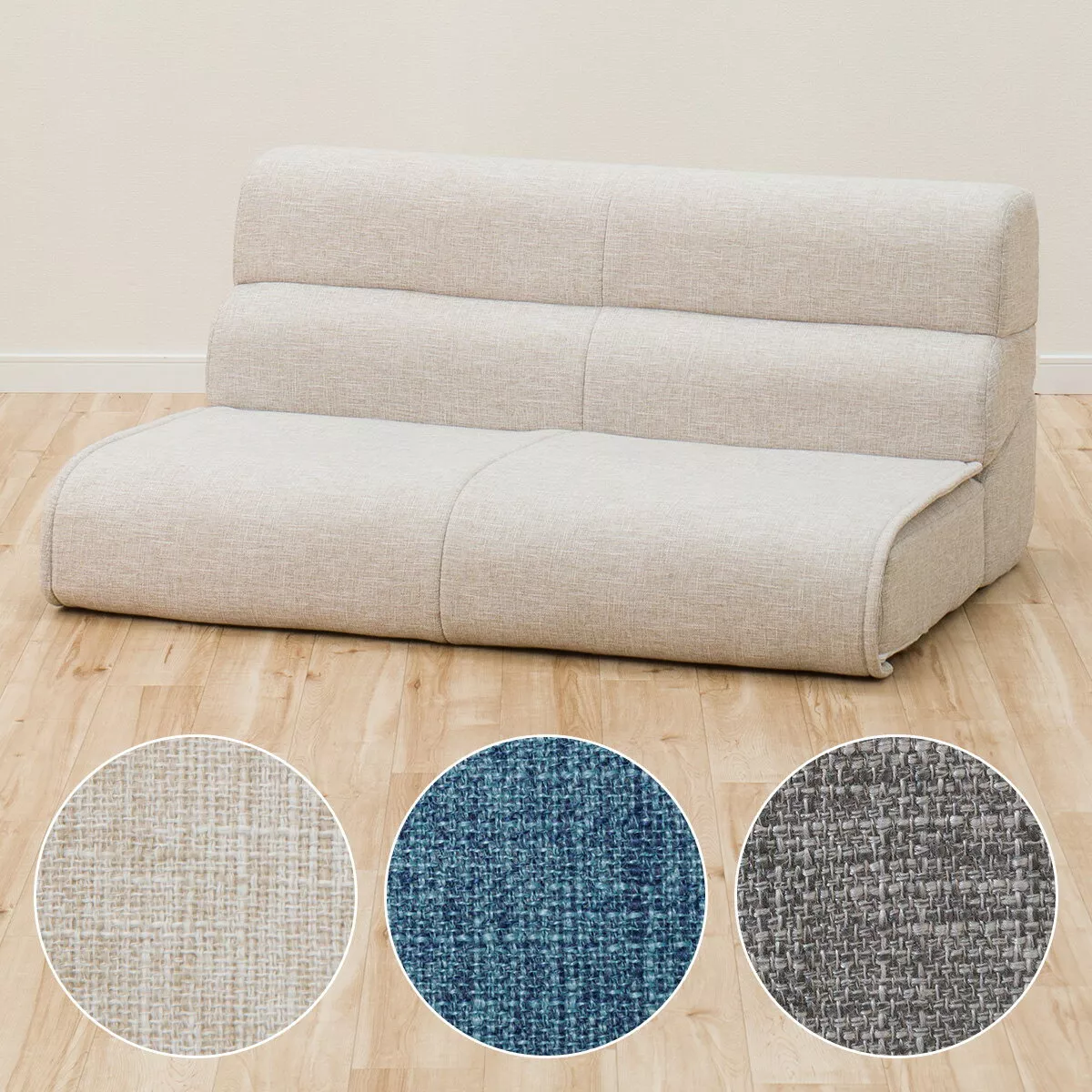 肘掛けや背もたれをすべて倒すとセミダブルサイズのベッドとしても使え、ワンルームや客用として備えておきたい場合にぴったりです。ファブリック生地なので、オールシーズン使えて便利です。