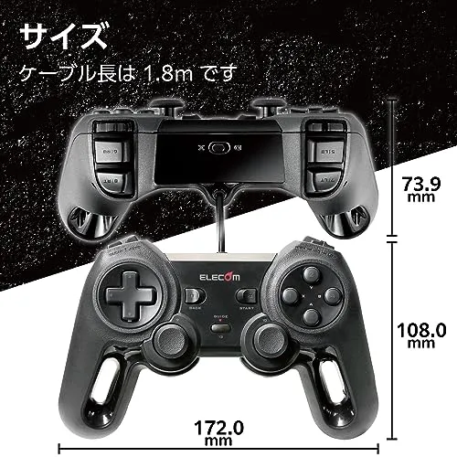 第4位 JC-U4013SBK エレコム | ![]() | Amazon楽天ヤフー | 安いのに多機能で優秀なPS4系コントローラー | Windows、Chrome OS | USB | 振動機能・連射機能 | - | 2本(アルプス社製) | 幅172.0mm×奥行108.0mm×高さ73.9mm ※ケーブルを除く / 約260g(ケーブルを含む) | 6ヶ月 |