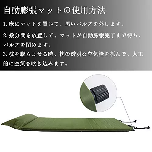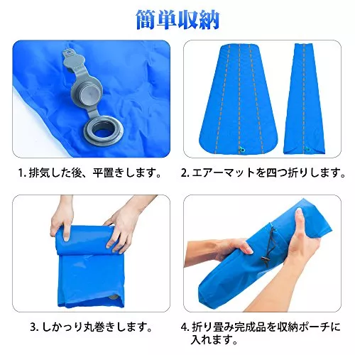 空気はマット上部のバルブを開けるだけで自動的に取り込まれるので、3分程度で膨らみます。厚み4cmで凸凹や冷退治面の上でも快適です。扱いやすいので自宅での簡易ベッドとしても適します。