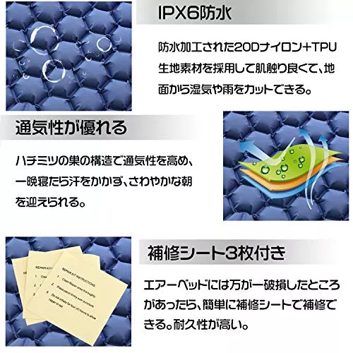 コスパ重視で選ぶ方におすすめの、メーカー・KAKURIのダブルインフレーターマットです。ハニカム柄とスエード調の生地で使い分けができる仕様になっています。最大厚は7cmで、使い勝手がいいのが魅力です。