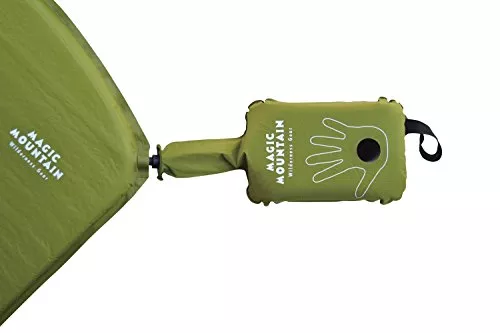 手動タイプのインフレーターマットは必ず空気入れで膨らませてください。自分の口で膨らませると呼気と一緒に湿気が入り、内部のウレタン素材を傷める原因になります。空気入れはアウトドア用品店・ネットショップ・100均など手に入り、手作りも可能です。