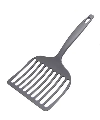 耐熱温度が280℃と高いナイロン製のフライ返しです。テフロン加工のフライパンなどコーティングされたものでも安心して使えます。最初は大きめのサイズに驚きますが、使ってみると良かったと好評です。