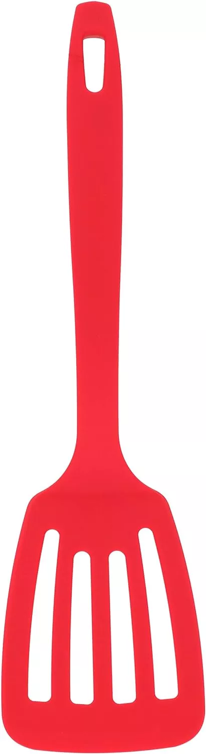 小さいからこそ小回りが利いて使いやすいと評判のミニサイズのフライ返しです。シリコン製でしなるので、食材同士の狭い隙間にもぐりこませてひっくり返すのがラクにできます。ヘラとしても使える形なので、これひとつで2役をこなせます。