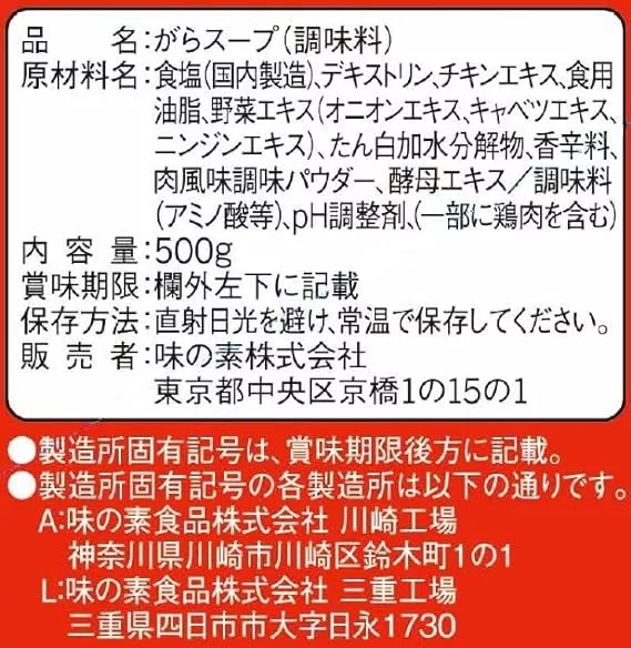 固まりにくい顆粒タイプで使い勝手も良く、リーズナブルな価格が気軽に使えます。スーパーなどで手に入りやすい鶏がらスープです。