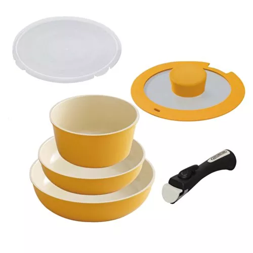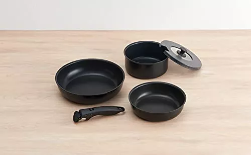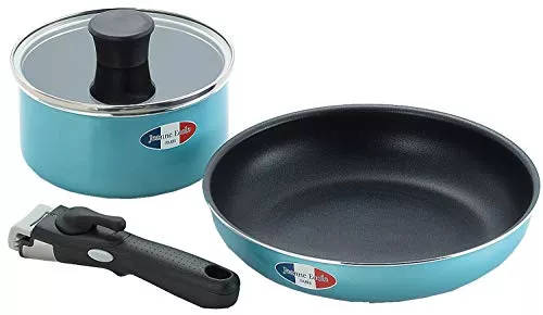 ジャンヌ・エコールのフライパンとポットの2点セット商品です。毎日の食事に便利なサイズに収まっており、いろいろな料理を作れます。また、ハンドルを外せばオーブン料理も可能です。