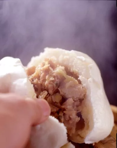 チャーシューまんは、もちもちでふわふわの生地に、濃厚な甘辛いタレで煮込んだチャーシューが香ばしい香と相まって、濃厚な味わいになります。