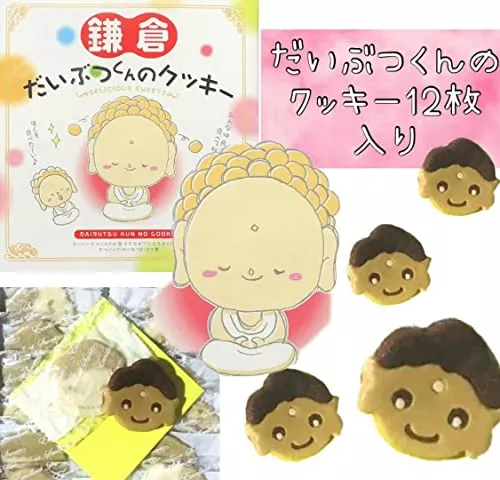 鎌倉の大仏をかわいいキャラクターにしたクッキーです。チョコレートとバターのクッキーなので、子供でも食べやすく、だいぶつくんの顔のクッキーなので子供へのお土産に喜ばれるでしょう。