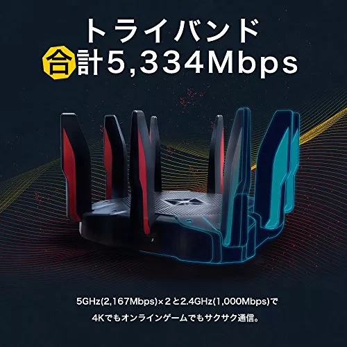 第10位 AX11000 TP-LINK | ![]() | Amazon楽天ヤフー | 1.8GHzクアッドコアCPU搭載のハイエンドモデル | 8 | 4804(5GHz)、1148Mbps(2.4GHz) | 802.11ax/ac/n/a/b/g | 288×288×184mm | 1.8 GHz 64ビットクアッドコアCPU | 2.4GHz・5GHz | - |