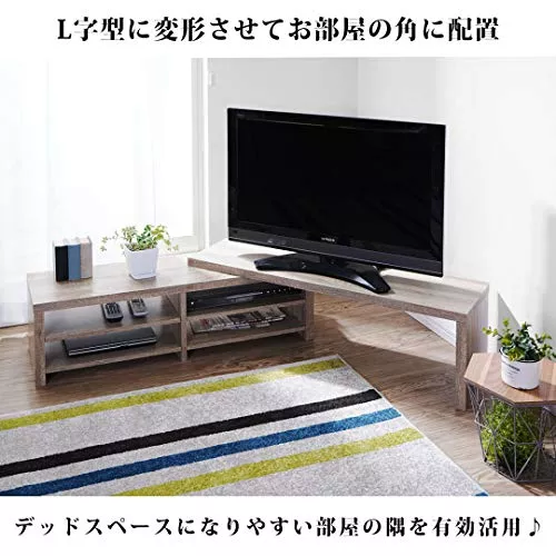 テレビ台下部が伸縮するデザインのロータイプのテレビ台です。テレビや部屋のサイズを気にせず設置できるほか、コーナーにも置けるので、生活の変化などに応じて長く使うのに向いている商品です。