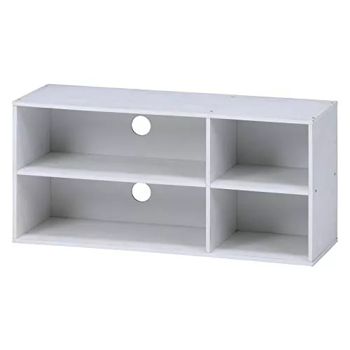 アイリスオーヤマの人気カラーボックス、モジュールボックスシリーズで、オフホワイト・ナチュラル・ウォルナットのおしゃれな3色から選べます。コード穴があるので、裏側の配線も簡単です。