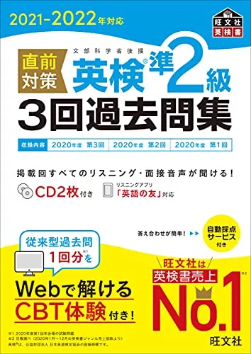 英検で売上数ナンバーワンの旺文社は、過去6回分の試験を掲載しています。 Web特典「自動採点サービス」やオリジナルの「面接シミュレーション」動画などが好評です。また、大問別で英検対策できる「英検分野別10分ドリル」もおすすめです。