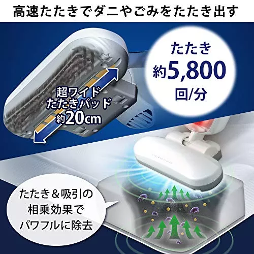 1分間に約6500回たたく超ワイドたたきパッドを採用しており、広範囲にわたって布団を叩きゴミを吸い取りやすくします。温風乾燥やダニチリセンサーも搭載しており、充実した機能を持つ布団クリーナーです。