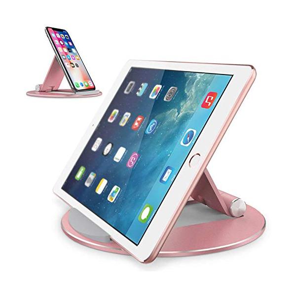 約3mmの超薄型でコンパクトに折り畳んで持ち運べるiPadスタンドです。スタンド部分は360度回転し、無段階に角度を調節できます。iPadだけでなくケースを付けたスマホにも使用できます。