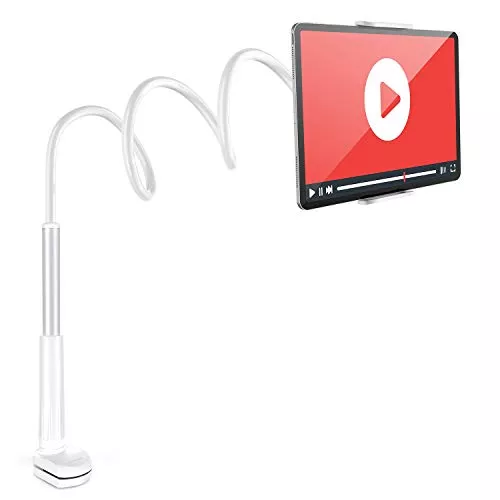 iPadに角度をつける、高さ調節も自由にしたい方には、アームタイプのiPadスタンドがおすすめです。アームタイプのiPadスタンドには吸盤で机や壁に固定するものと、机や棚を挟んで固定するものがあります。どちらも設置スペースを取らないのがポイントですね。