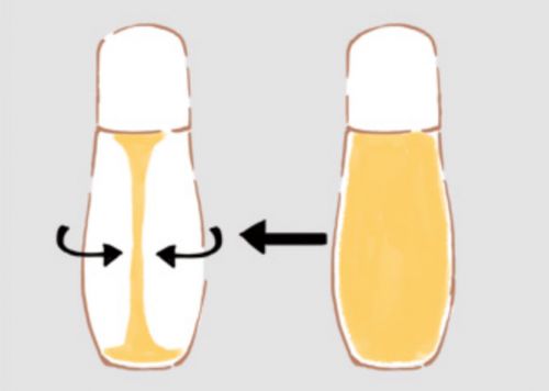 ただし、ボトルのボディ部分を押しすぎると液体が多く出てきてしまい、液ダレの原因になるので注意してください。