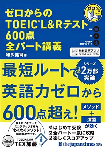 現時点での得点が300点以下の方や、英検5級程度の知識からでもTOEICで得点できるようになるための一冊です。英検5級は中学初級くらいのレベルだとされており、英文法の基礎が分からない方でも学べます。