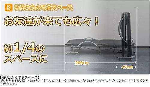 6段階のリクライニング機能を備えた、便利な折り畳み型ベッドです。折り畳む際にはバネの力を使うため、女性でも簡単に折り畳んでコンパクトに収納ができます。掃除のときや来客時にサッと畳むといった使い方可能です。