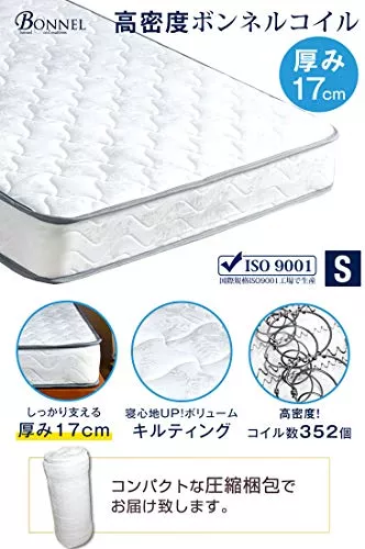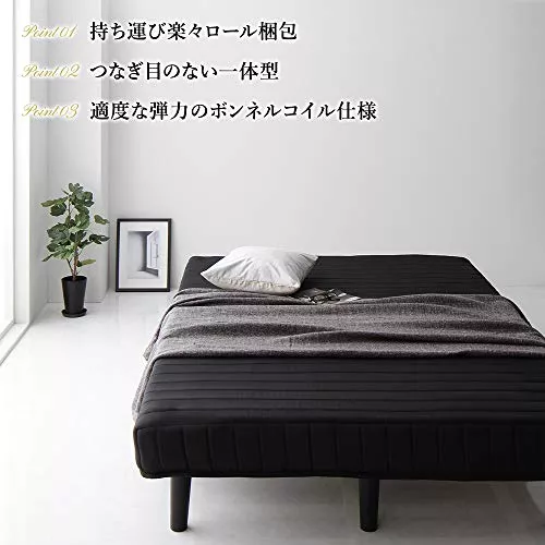 シングルよりもショート丈で、ワンルームや狭いスペースにも楽々設置できるセミシングルサイズの脚付きマットレスです。耐久性と強度に優れ、通気性も良いボンネルコイルを使用しています。