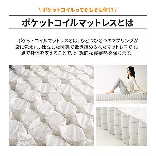 ポケットコイルの高い耐久性とスプリング性が快適な睡眠をサポートします。詰め物は国産にこだわったウレタンフォームとバインダーフェルトを使用しています。表生地は優れた抗菌処理加工を施した、通気性・耐久性に優れた生地を使用しています。口コミ評価も高いです。