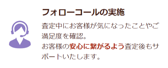 加えて、コンプライアンス部の設置や、査定士に問題がなかったかどうかを確認するためフォローコールという制度を導入しており、利用者が安心して買取してもらえるための制度も多いです。