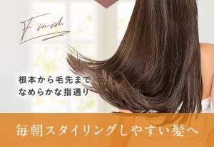 ヘアドライヤーやヘアアイロンなどの熱をあててもダメージや傷みを与えず、髪を保護しながらくせ毛やうねりを抑えてまとめやすい髪をキープ。毎日のヘアセットにも時間がかからず楽になりますね。