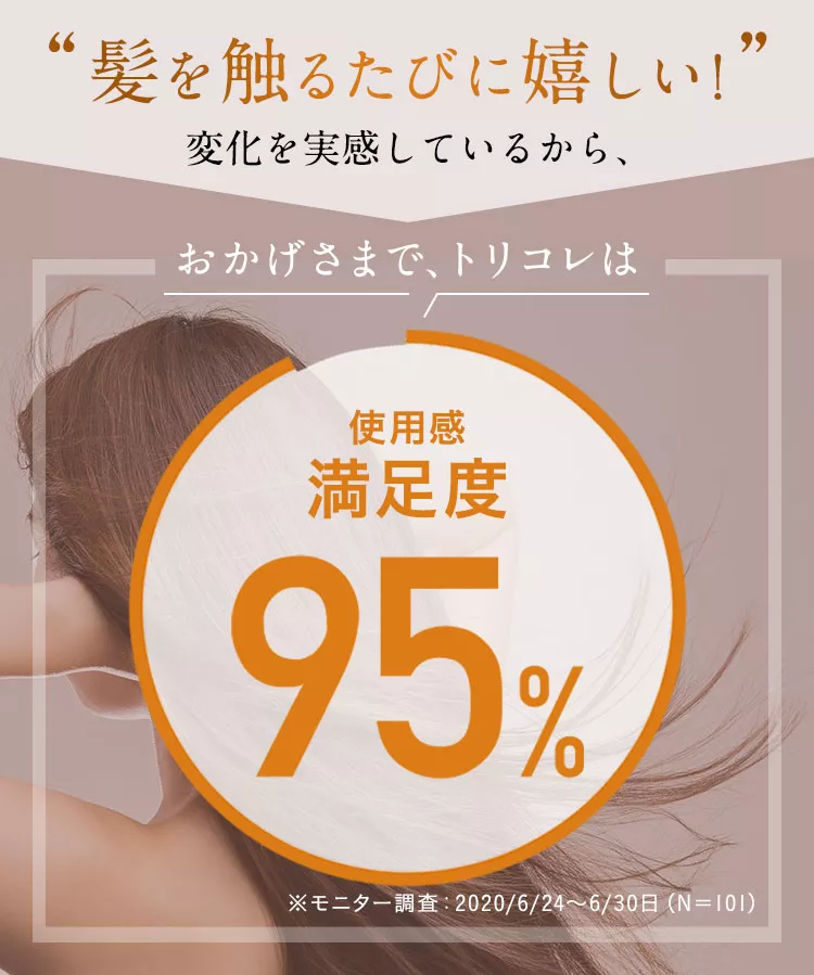 普段のシャンプー・トリートメントではなかなかケアできない、日差しで傷んだ毛先をケアしたかったようですね。トリコレは頭髪だけでなく頭皮のケアもできるので、ヘッドスパのような温感を感じながらトリートメントをして洗い流せば、健康的なサラツヤの髪に導きます。