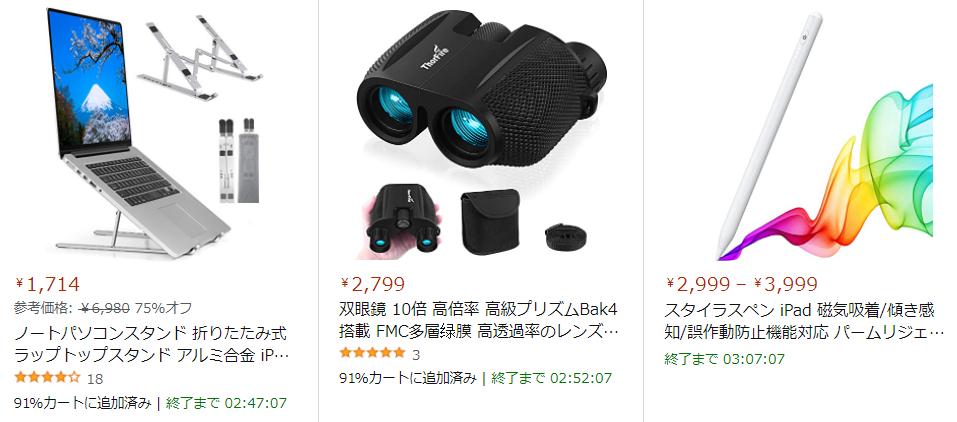 数量限定タイムセールは、名前の通り限られた数量だけ販売しているセールです。セール対象商品が高い割引率で買えるのでAmazonブラックフライデーのなかでも目玉セールになっています。ほかのセールよりも割引率が高い分、購入難易度も高いです。
