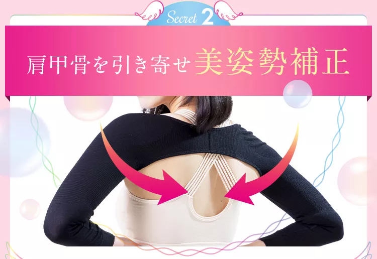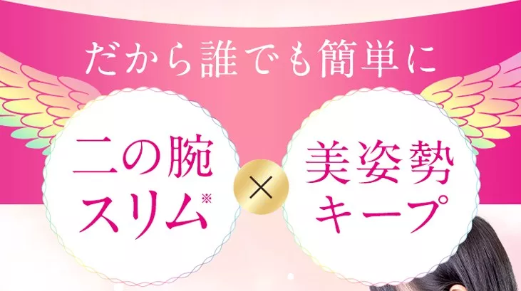 スリムフェザーは、二の腕を細く見せるだけでなく、姿勢を良くして上半身をすっきり整え、首や肩の凝りを軽減してくれます。