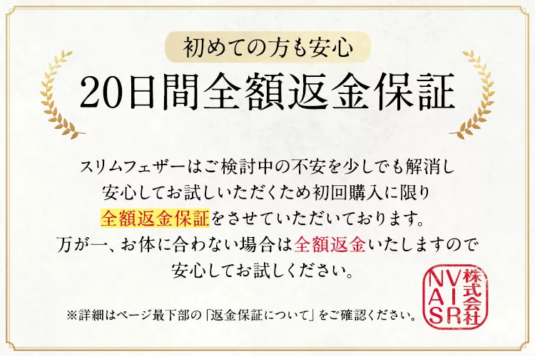 20日間全額返金保証について