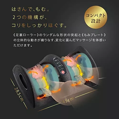 ふくらはぎから足裏を、もみとローラーで同時にマッサージできるフットマッサージャーです。足裏前方と足首後方に可動ローラーが付いており、回転しながら刺激して、だるさやむくみをすばやく効果的にマッサージしてくれます。
