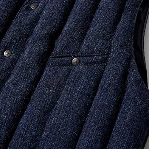 「ツイード」はビジネスシーンで使われる機会が多い素材で、上品な印象を与えるのに効果的です。厚手で頑丈、さわり心地もいいため、さまざまなブランドからツイード素材のダウンベストが発売されています。ただストレッチ性がないので動きづらいのが難点です。