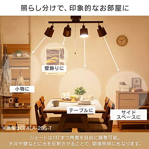 天然目の美しさとメタリックのスタイリッシュさが融合したおしゃれな、ペンダントライト型のシーリングライトです。4灯あるシェードは縦90度・横360度と自由度の高い角度調整ができます。
