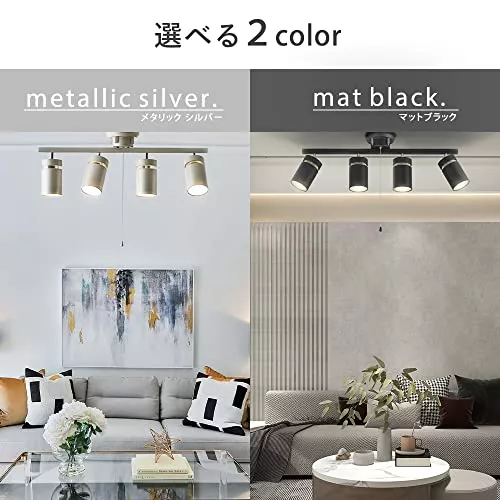 スポットライトは木製や金属製のバーに、小型のライトが3灯または4灯ついているタイプのライトです。シェードはそれぞれ単独で向きを変えられるので、家具の配置などによって光の当たり具合を調節でき、中には、リモコンで向きを変えられるタイプもあります。