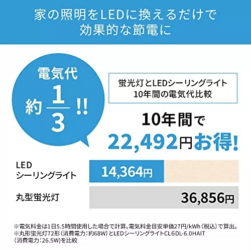 白熱電球と比べて高寿命なLEDは電気代の節約になるので、LED電球を使いたいならLEDに対応したシーリングライトを選びましょう。また、中にはLED電球が内蔵されたタイプの商品もありますが、電球の色を変えたい場合は気をつけてください。