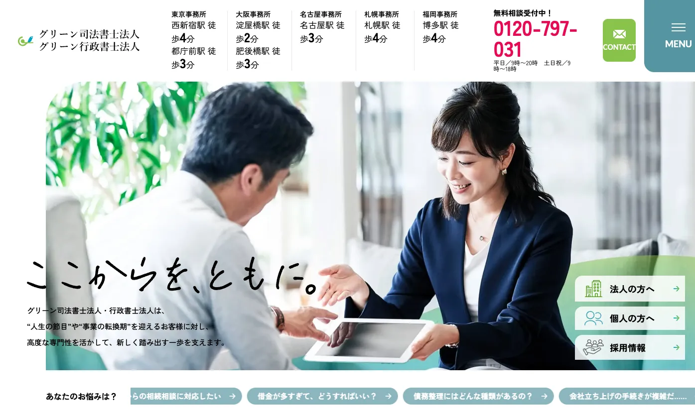 グリーン司法書士法人は借金問題に強みがあり、良心的な価格設定で親身に向き合ってくれます。依頼前には借金減額診断シミュレーションもできるので、まずはいくら借金が減るか確かめてみてください。