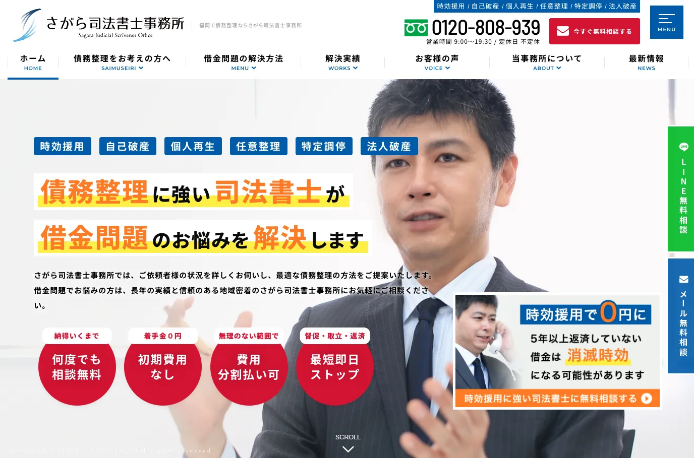 債務整理と個人再生にて大変親身になっていただき、スムーズに進める事が出来ました。 1年半ほどの期間でしたが、オフィスで直接対面で面談したり、不可能な時には、電話やLINEなどでも行いながら、効率良くスピーディーに対応していただきました。