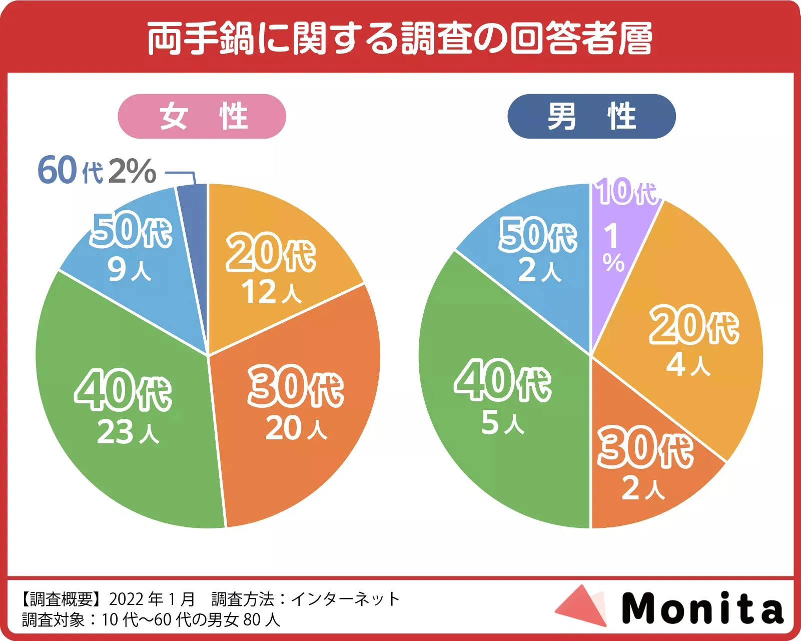 アンケートでは、4人以上で暮らしている方の多くが24cm以上の両手鍋を使用していると回答しました。