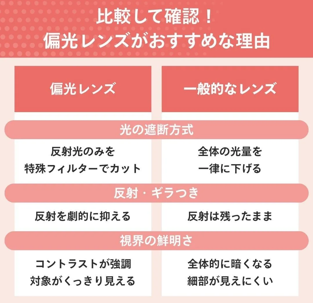 反射光をカットしてクリアな視界を作る偏光性能