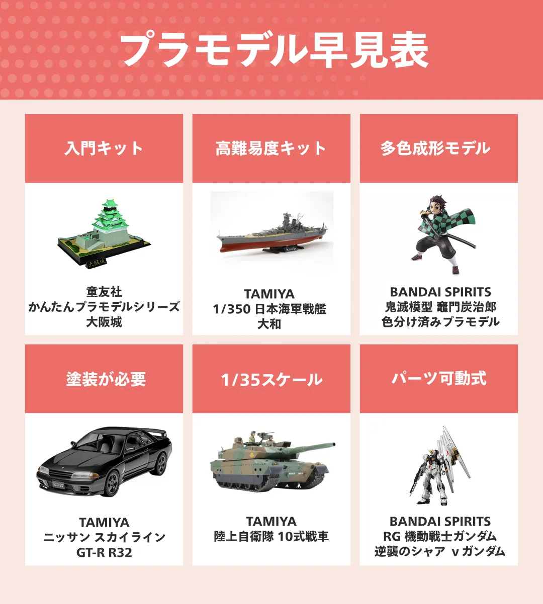 プラモデルは「何を重視するか」を明確にすることで、自分に合った一つのキットが選べます。プラモデル選びでチェックすべきポイントは、ズバリ以下です。