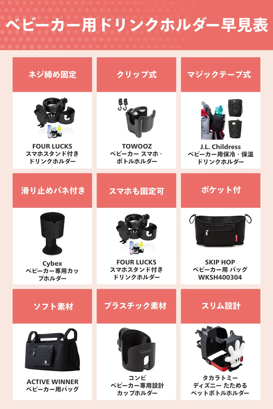ベビーカー用ドリンクホルダーおすすめ早見表はこちら